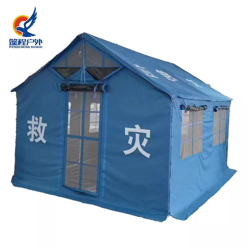 Пенгцхенг Оутдоор шатори за хитне случајеве од 12㎡ углавном су категорисани у два типа: 12㎡ појединачни шатор за хитну помоћ (национални стандардни/нестандардни) и 12㎡ памучни шатор за хитну помоћ (национални стандардни/нестандардни). Са димензијама од 3,2 м (ширина) × 3,7 м (дужина) × 1,75 м (висина надстрешнице) × 2,67 м (вршна висина), сви шатори имају водоотпорну и ватроотпорну тканину високог квалитета са ојачаним челичним конструкцијама, повећавајући издржљивост за 50%. Одликује их модуларни дизајн, лаки су за одржавање и брзо се склапају.