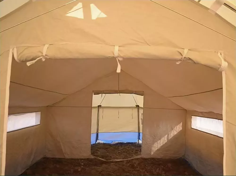 Спољни шатор: мешавина полиестера и памука или ХДПЕ ламинирана тканина, са троструком заштитом (водоотпоран, отпоран на пламен, отпоран на УВ зрачење)